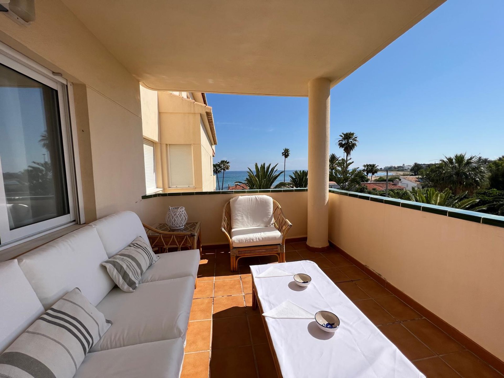 Genießen Sie dieses helle, frisch renovierte Apartment mit 80 m², das in einer privilegierten und ruhigen Lage direkt am Meer liegt. Mit zwei Schlafzimmern, darunter eine Master-Suite mit 1,80 m Bett und ein Familienzimmer, bietet es höchsten Komfort mit Klimaanlage, voll ausgestatteter moderner Küche und einer gemütlichen Terrasse mit Meerblick. Die Wohnanlage verfügt über Pools, Gartenanlagen und direkten Zugang zu einem ruhigen, wenig besuchten Strand – ideal für einen erholsamen Aufenthalt. Dank der ausgezeichneten Lage befinden Sie sich nur wenige Schritte von wichtigen Dienstleistungen und der „Milla Verde“ entfernt, die sich perfekt zum Spazierengehen, Sporttreiben und Entspannen mit allem modernen Komfort eignet.